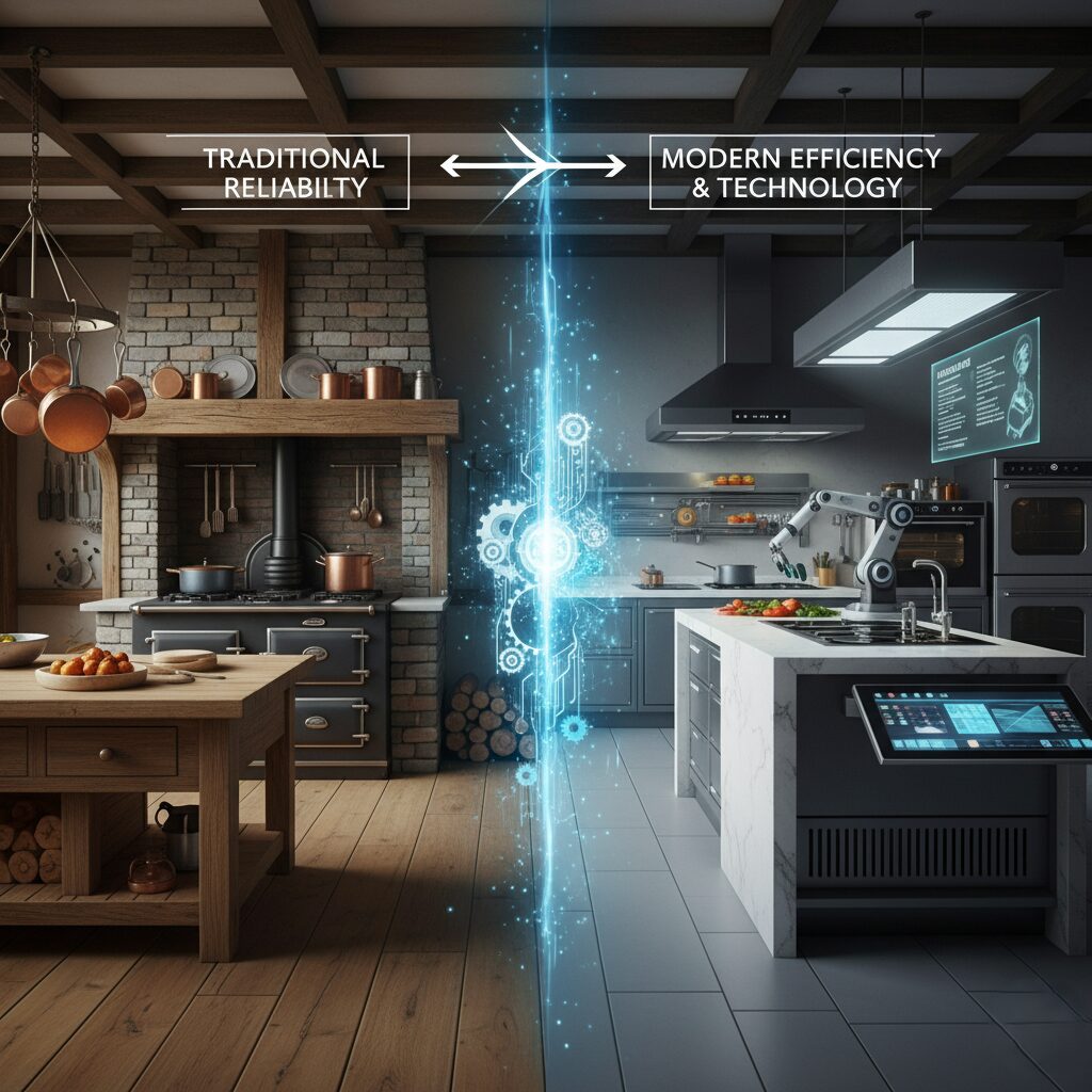 Kami menggabungkan keandalan konstruksi tradisional dengan efisiensi dan teknologi yang dibutuhkan oleh dapur modern secara mulus.